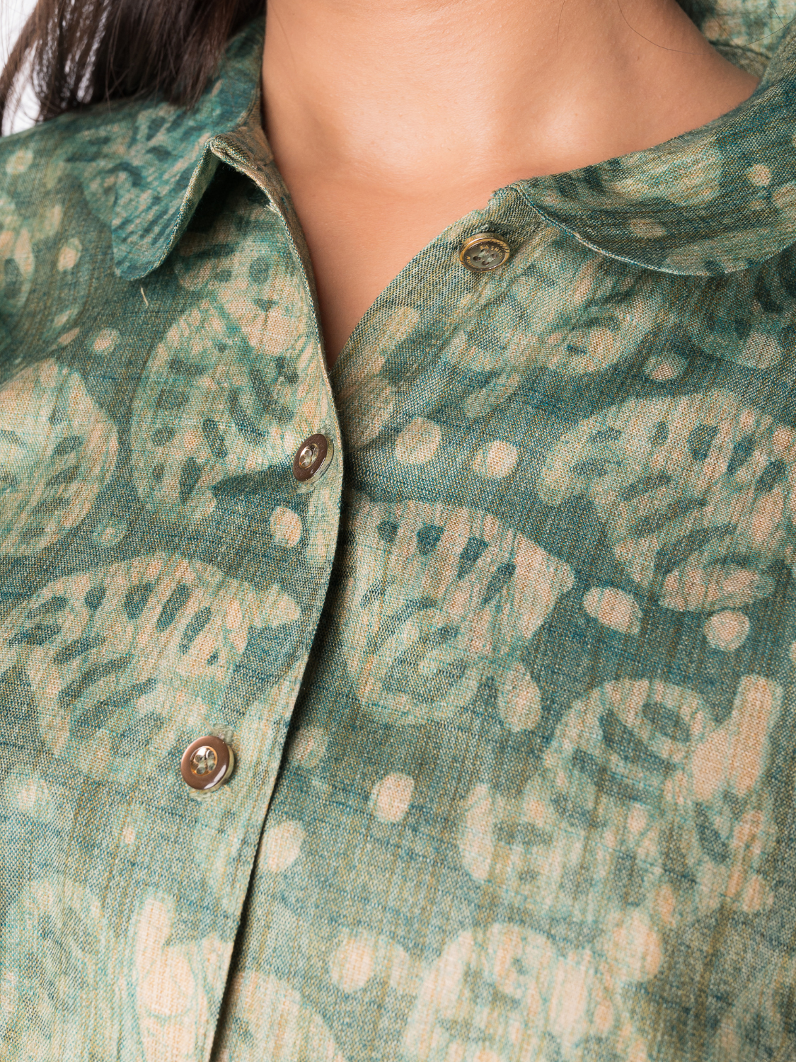 - Western Wear with a Traditional Twist: Featuring a contemporary shirt pattern, this outfit is a perfect fusion of Western wear and Indian fabric, making it a great choice for women who appreciate both cultures.