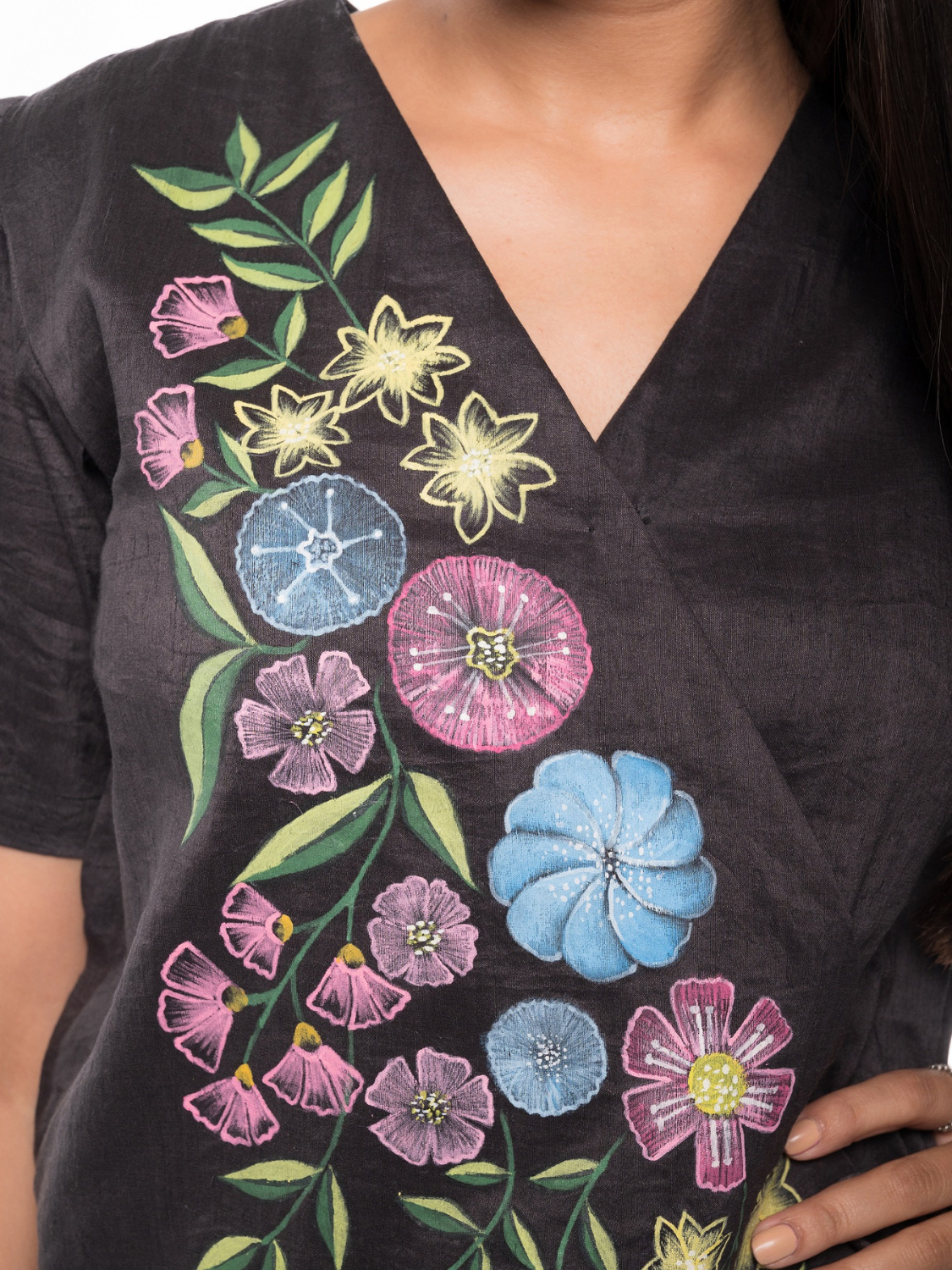 - Stylish black Angrakha pattern top featuring an overlapping V-neck design.