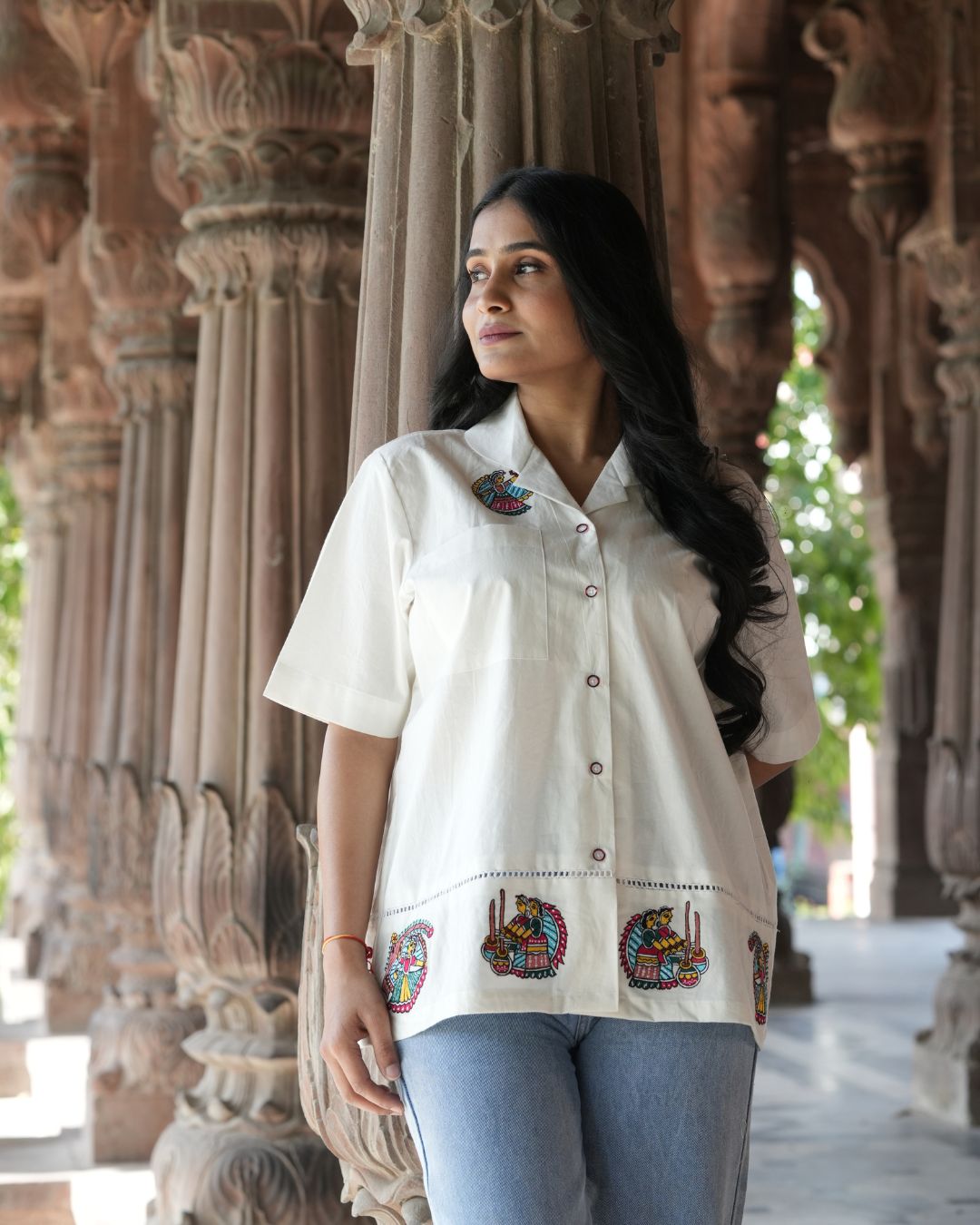 Casual and Chic Cotton Embroidered Shirts for Women - Panchakanya Clothing