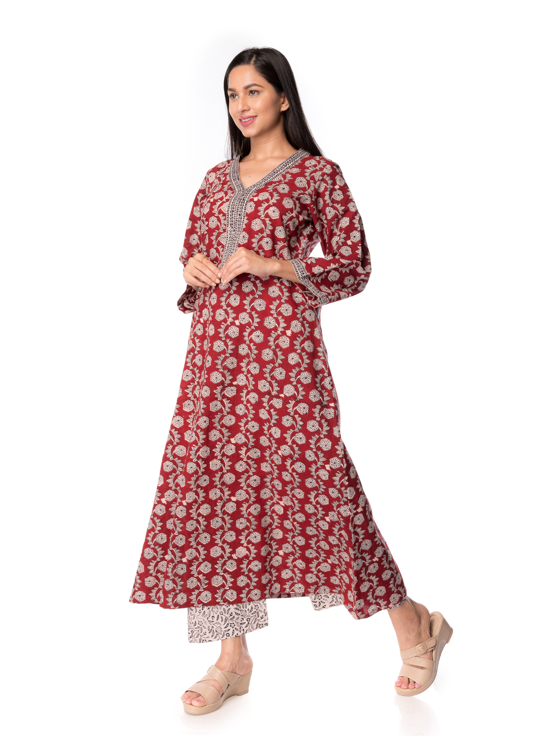 - 💼 Stylish Yet Functional: The A-line flare design and lightweight fabric make it an ideal choice for everyday wear or as a go-to kurta for women for office and family events.