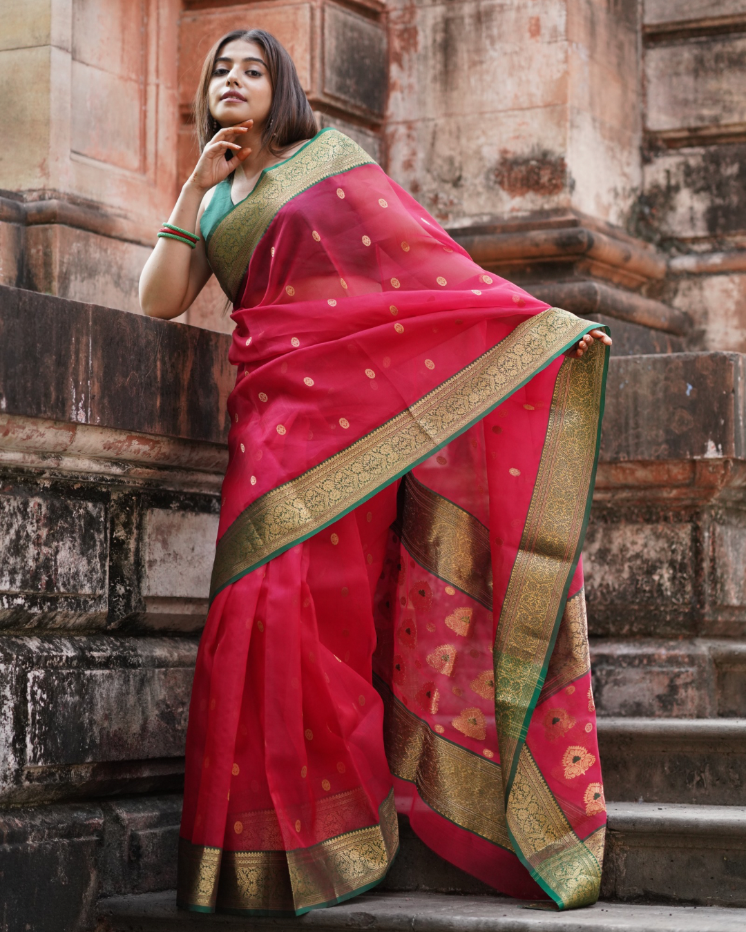 - Luxurious Fabric: Explore Chanderi silk sarees for women crafted with premium quality silk, ensuring elegance and comfort for all-day wear.