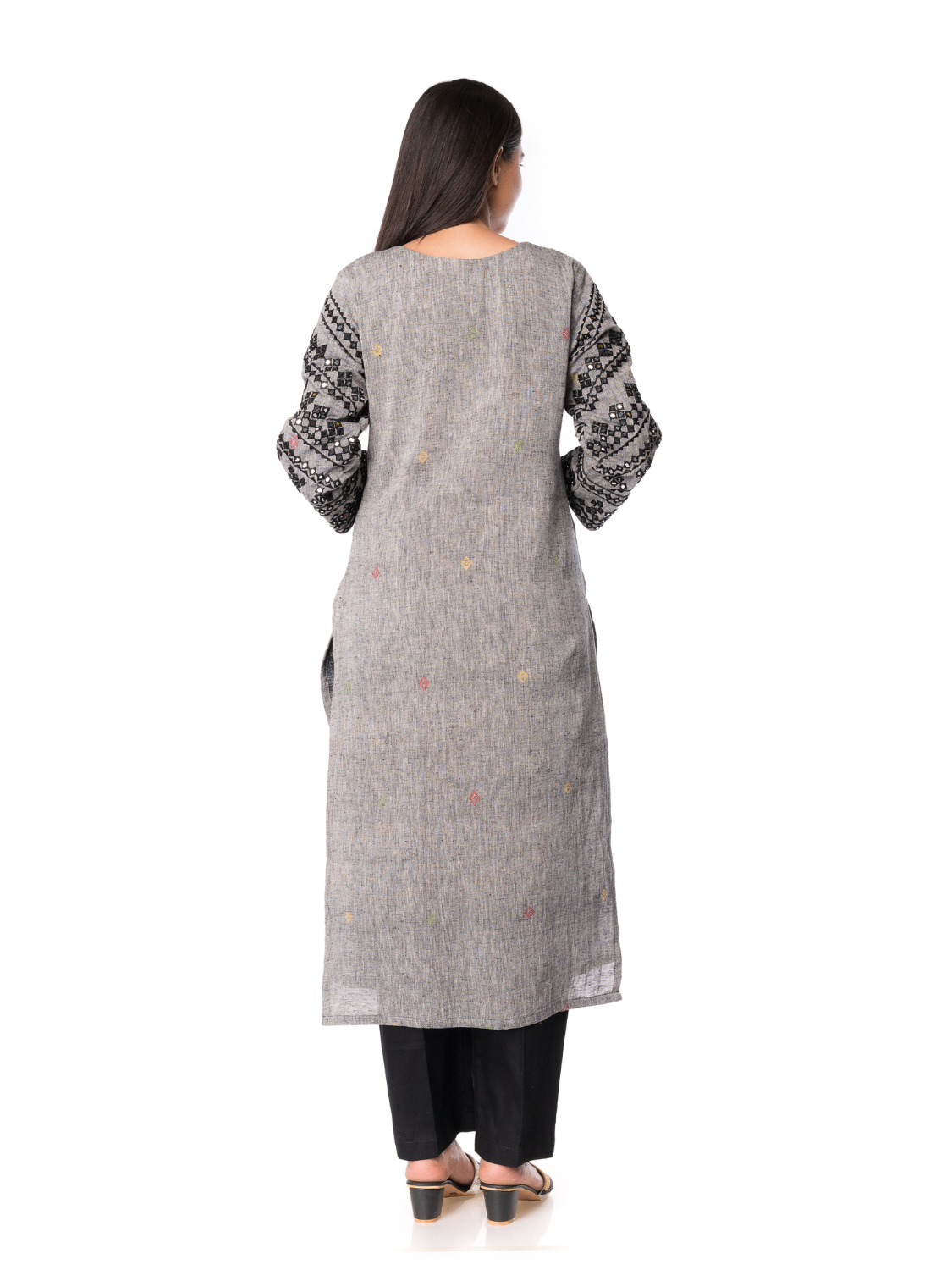 Grey Black Elegant Mirror Embroidery Kurta with Lining - Panchakanya Clothing
