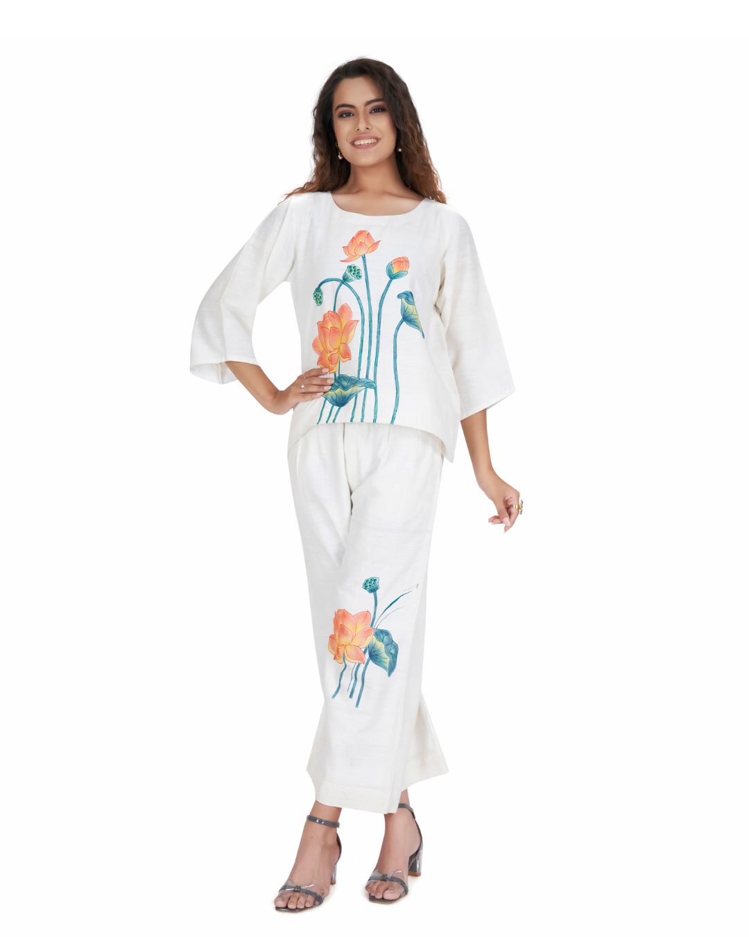 - Premium hand-painted Organic Cotton silk co-ord set for women, perfect for office wear or parties.