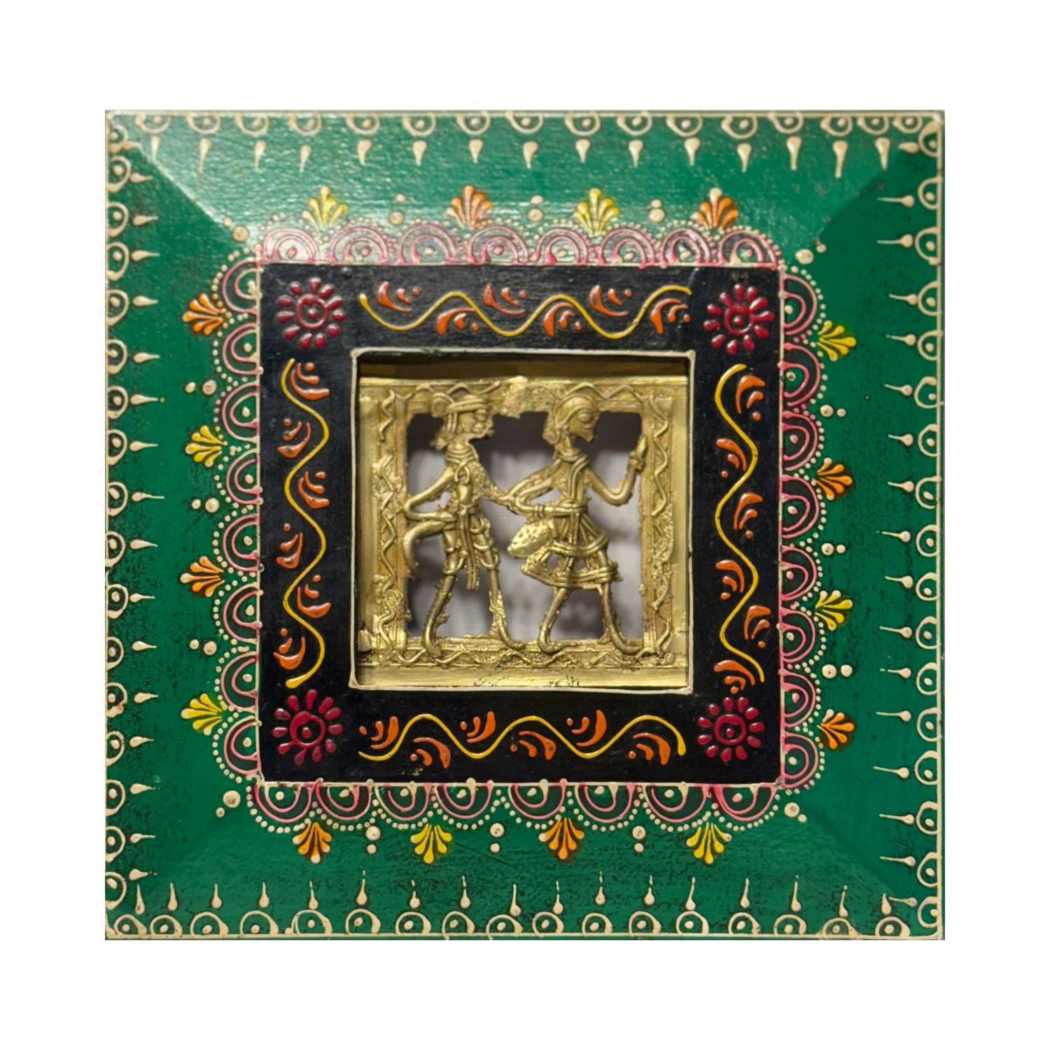 Handcrafted 9 Inch Warli Art Wall Hanging – Traditional Indian Wooden Frame with Dhokra Brass Tribal Figurine for Home Decor