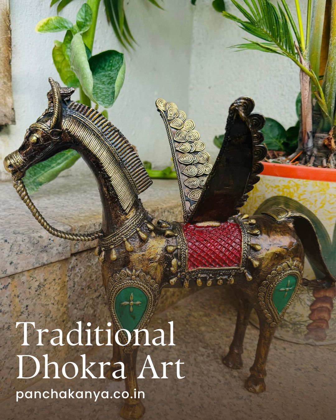 Handcrafted Brass Dhokra Horse With Wings - Traditional Indian Decor