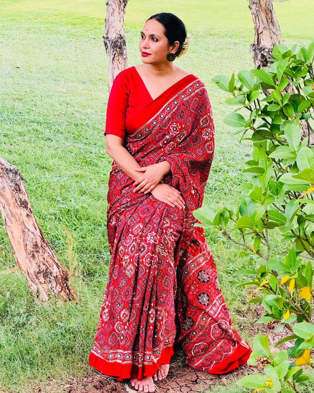 Modal Ajrakh Print Handmade Saree - Handmade Luxury for Every Occasion