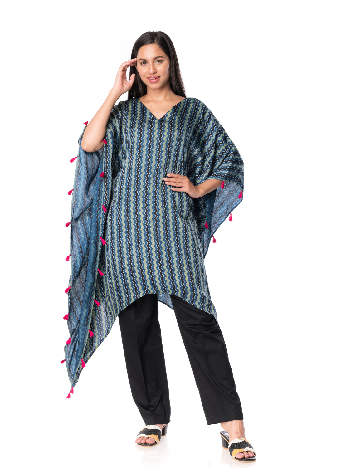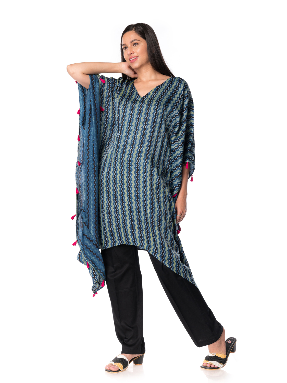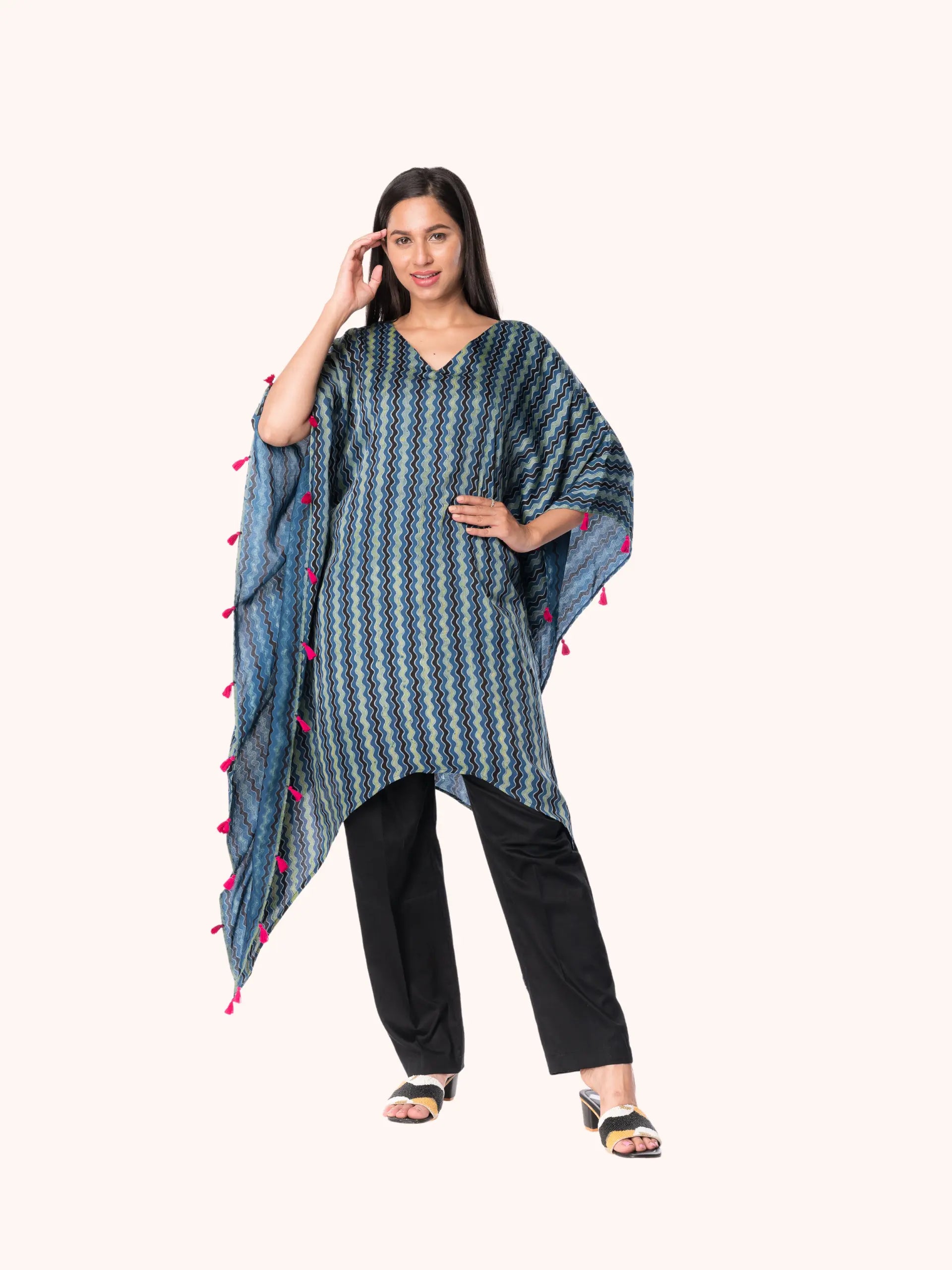 - Elegant Silk Kaftan with Ajrak Print: Discover Panchakanya Clothing’s Western Wear Kaftan with Pant for Women, perfect for casual and chic looks.