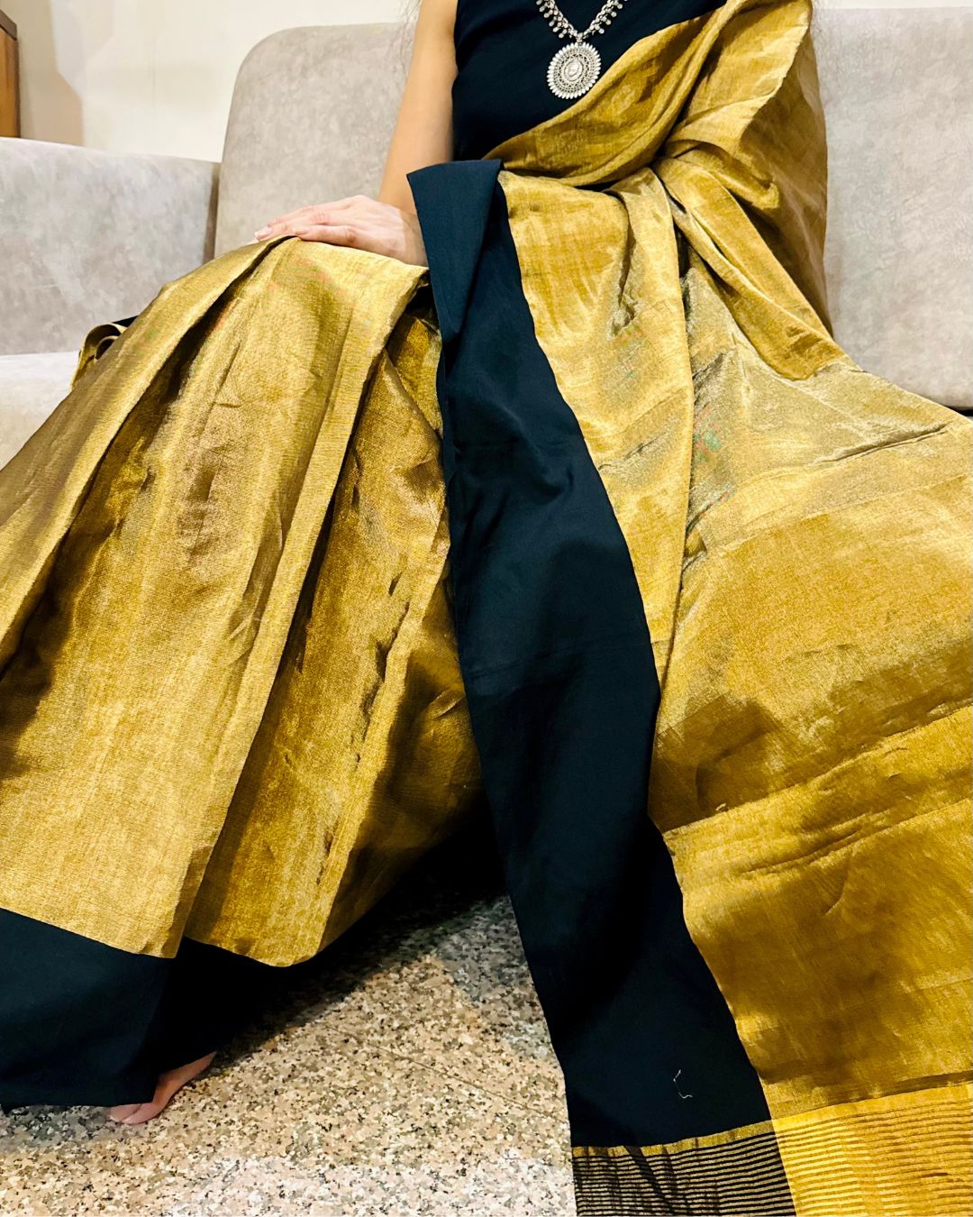 Stunning Gold Tissue Silk Saree for Women – Perfect for Weddings & Parties