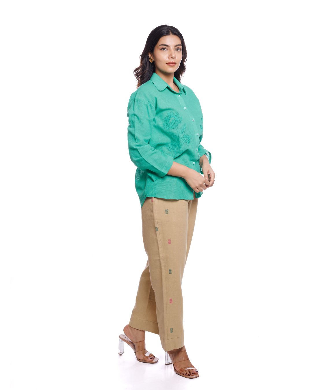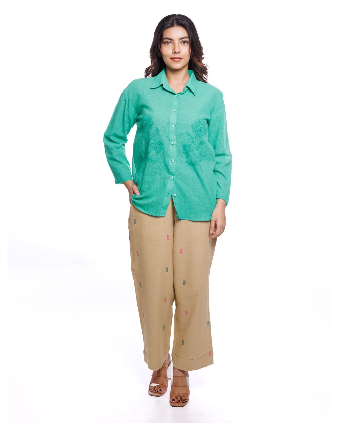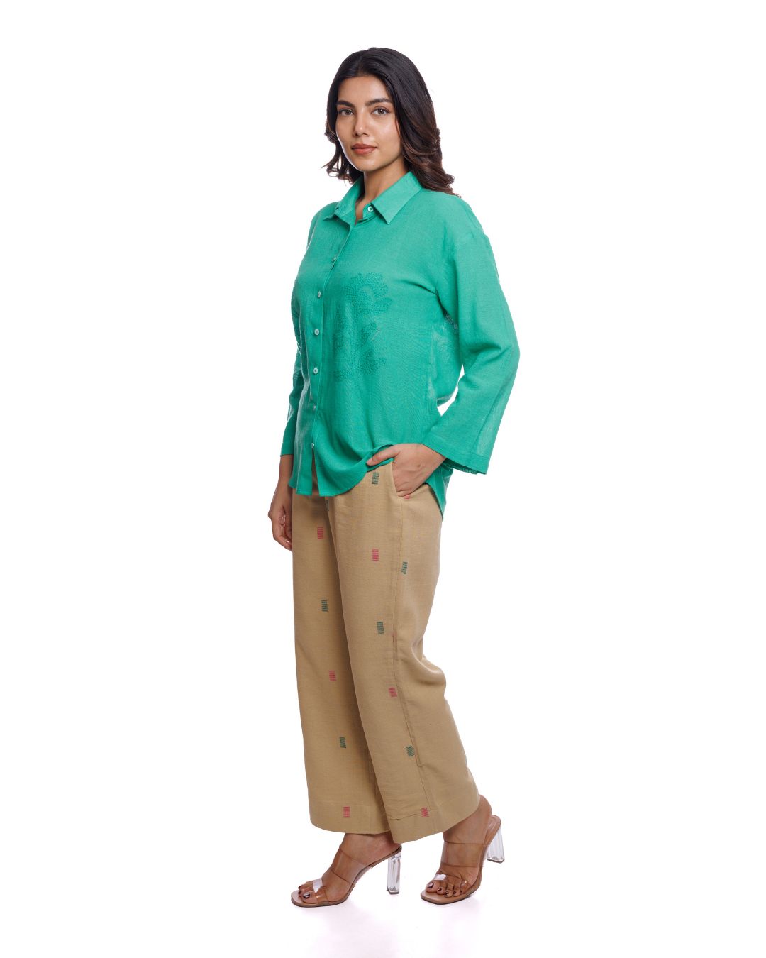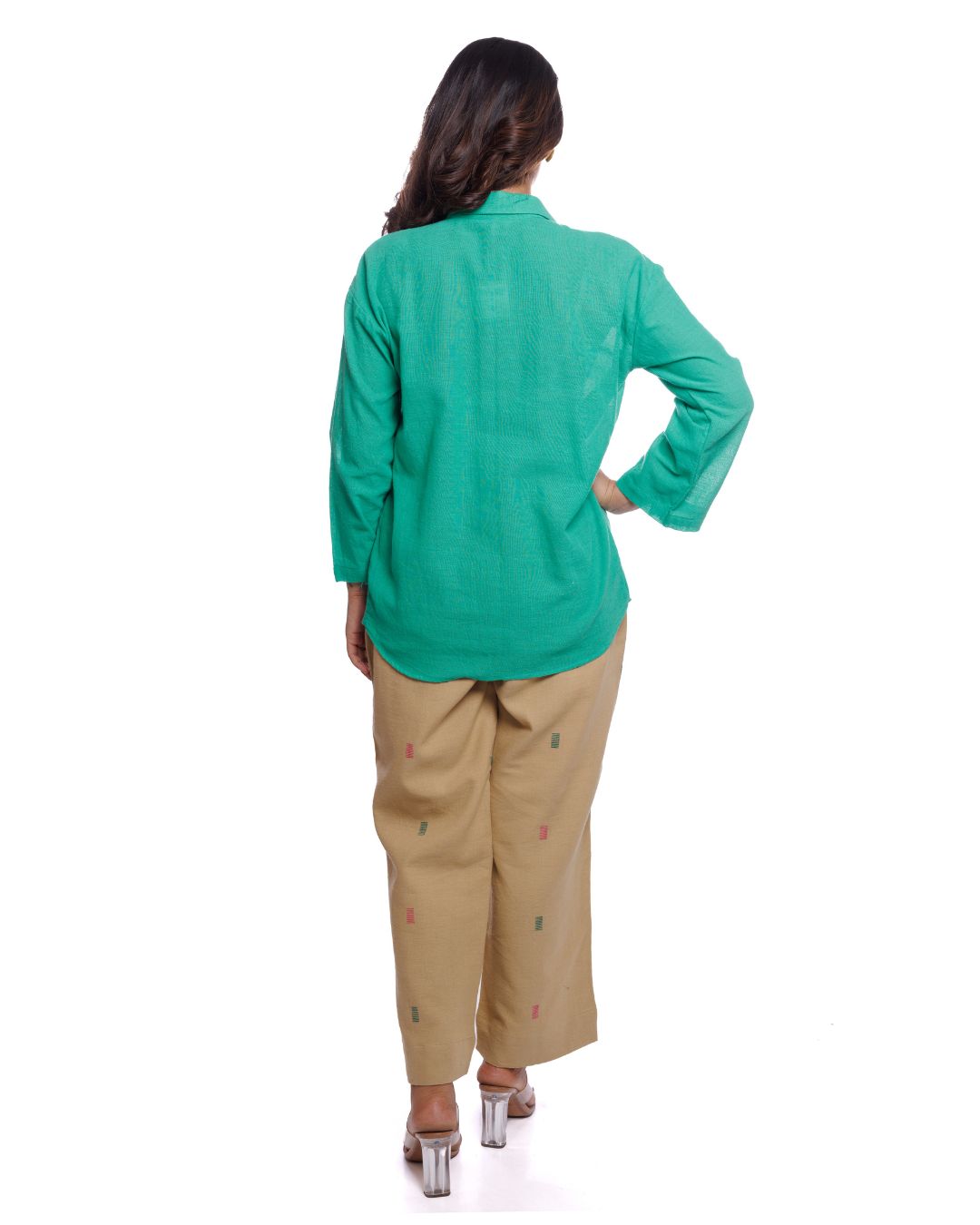 Women's Green Kala Cotton Shirt with Subtle Embroidery | Sustainable Handwoven Fabric | Casual & Workwear